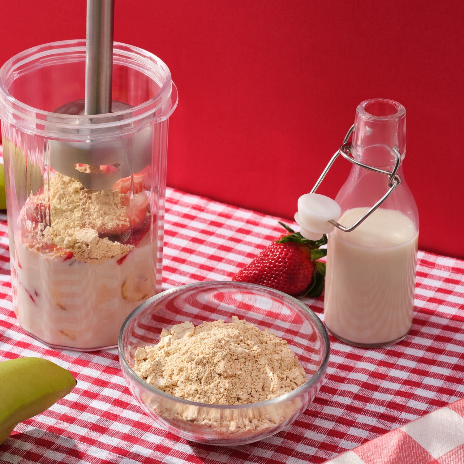 Add 2 tbsp of powder to your favorite whey or vegan protein shake.