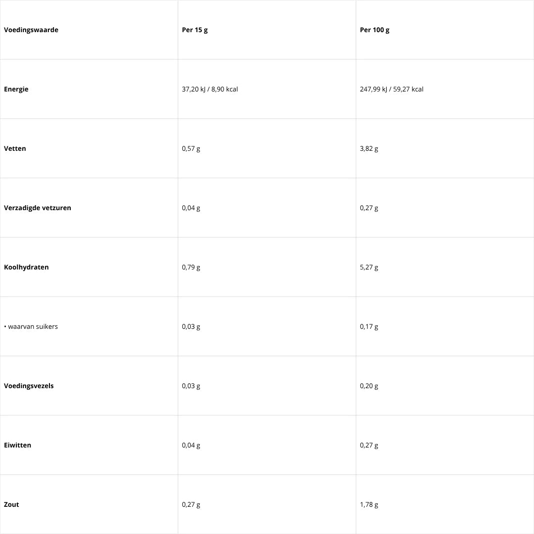 Fancy a sauce with character, but not the calories? Rabeko Zero Samurai Sauce is your spicy partner in crime. With fiery red chili peppers and a soft, creamy undertone, this sauce provides an intense taste experience, without added sugars and with only 4 kcal per portion.